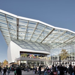 From scales in coloured zinc to graciously bent wood, from the tracery of façades in white metal to ancient brick floors recalling the industrial past, Docks Bruxsel is a lively combination of the shapes and materials that characterise the city.