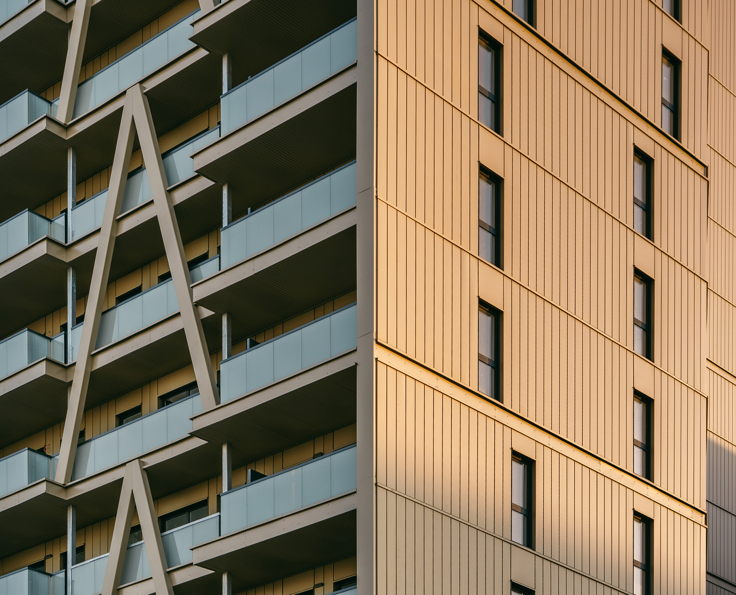 This flagship project features locally sourced cross laminated timber floors and facades while the design incorporates the latest timber structural innovations as well as added comfort and security for the residents. Glazed facades proudly reveal and yet protect these wooden elements, announcing the project intentions to the city and beyond. With multiple porosities to the ground floor as well as managed setbacks to enable natural light to permeate the center of the block, the buildings connect smoothly with the surrounding urban tissue.